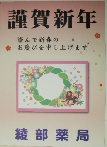 綾部薬局様。 来年の年賀用ポスター。 今年もあとわずかですね。 早いものです。 来年も良い年となりますように! 合成紙出力