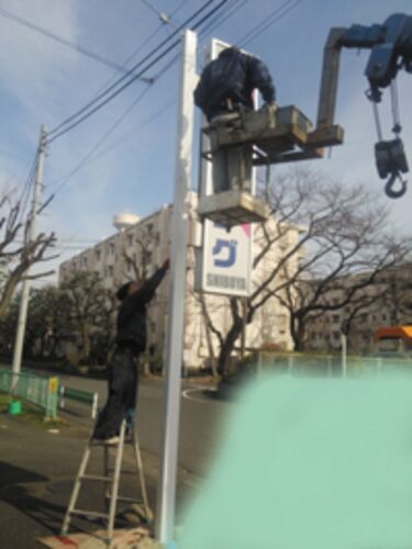 この地で長く営業なさっている、シブヤクリーニング様。 ポールの錆止め上塗りのご依頼。 125角。 ケレン速乾錆止め白塗り、上塗りはうすいグレー仕上げ。 今回はベテランの域に入ってきた剛君としんぺい君に入ってもらいました。 いつも楽しくお客様想いの…